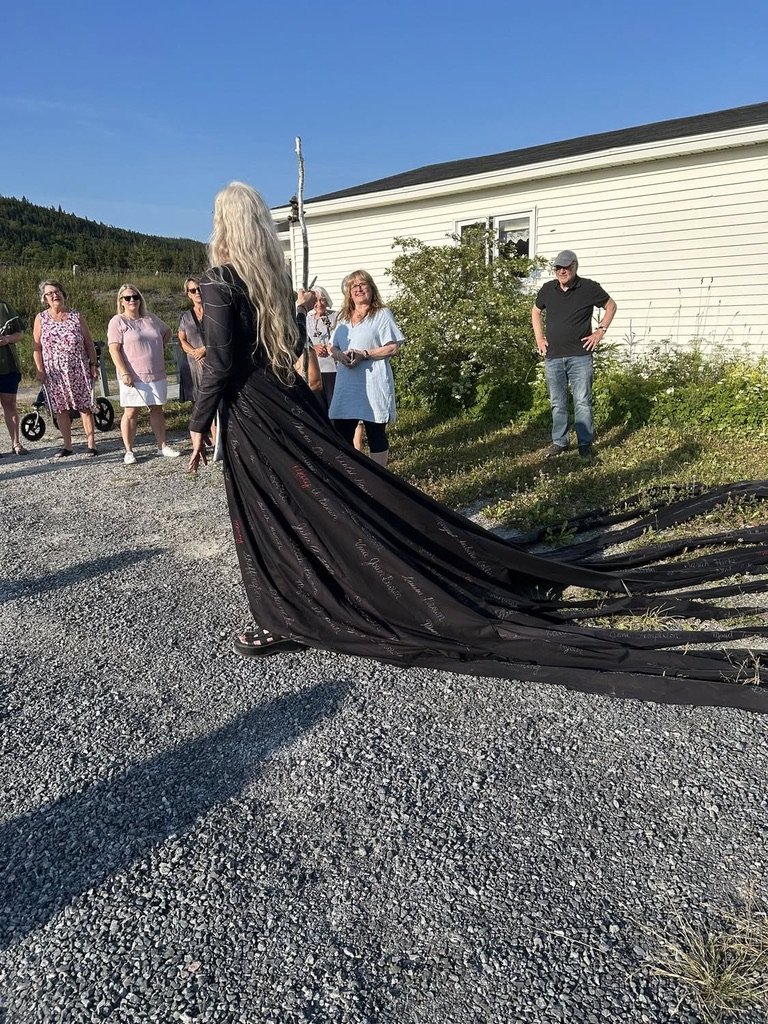 Some images from Frolic, a performance that took place in July 2025 in Gillams, NL, with the women in the town. We marched from the town hall to the Gillams Museum with my handmade instruments and sang the Ode to Newfoundland.